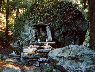 ![]() 天禺岩上面、 少し北に傾斜しているがほぼ平坦で結構広い。 西端には玉石が置かれ祠が奉られている。 | ![]() |